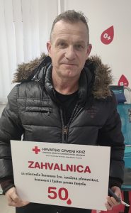 U sklopu ove akcije dodijeljena je i jedna posebna zahvalnica, darivatelju Josipu Miljaniću za 50 puta darovanu krv.