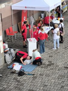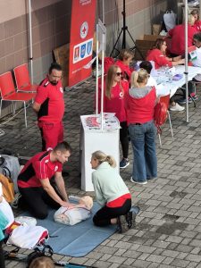 Druge subote u rujnu obilježava se Svjetski dan prve pomoći kako bi se ukazala važnost pravodobnog i pravilnog pružanja prve pomoći u svakodnevnom životu ili u raznim kriznim situacijama. Mi smo to učinili prošle subote, 13. rujna, ispred Sportske dovrane Samobor u kojoj se održavao rukometni turnir za djevojčice iz cijele Hrvatske, a na vanjskim sportskim terenima Festival nordijskog hodanja tako da se puno sudionika tih skupova, ali i drugih građana okušalo u pružanju prve pomoći.