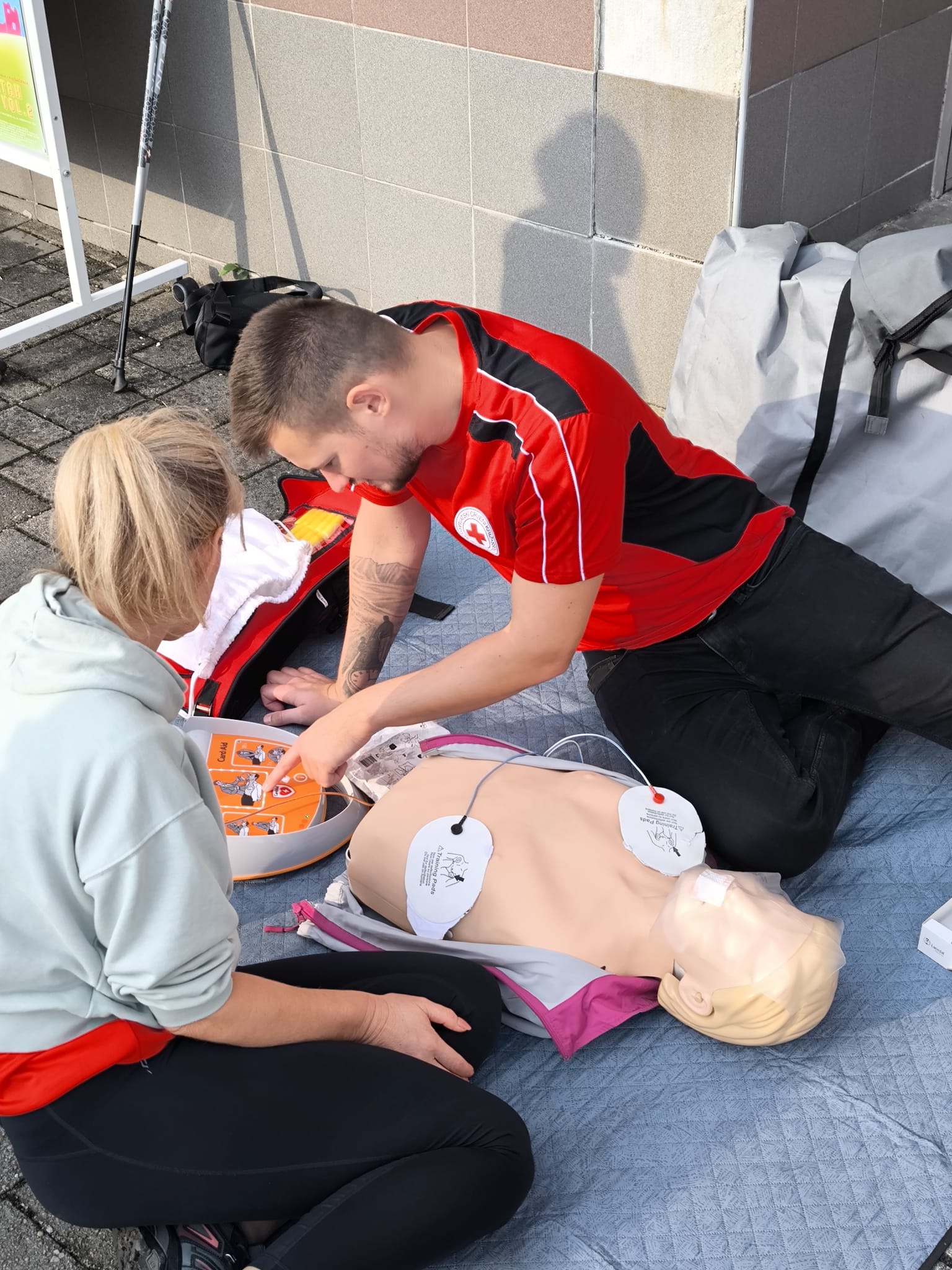 Druge subote u rujnu obilježava se Svjetski dan prve pomoći kako bi se ukazala važnost pravodobnog i pravilnog pružanja prve pomoći u svakodnevnom životu ili u raznim kriznim situacijama. Mi smo to učinili prošle subote, 13. rujna, ispred Sportske dovrane Samobor u kojoj se održavao rukometni turnir za djevojčice iz cijele Hrvatske, a na vanjskim sportskim terenima Festival nordijskog hodanja tako da se puno sudionika tih skupova, ali i drugih građana okušalo u pružanju prve pomoći.