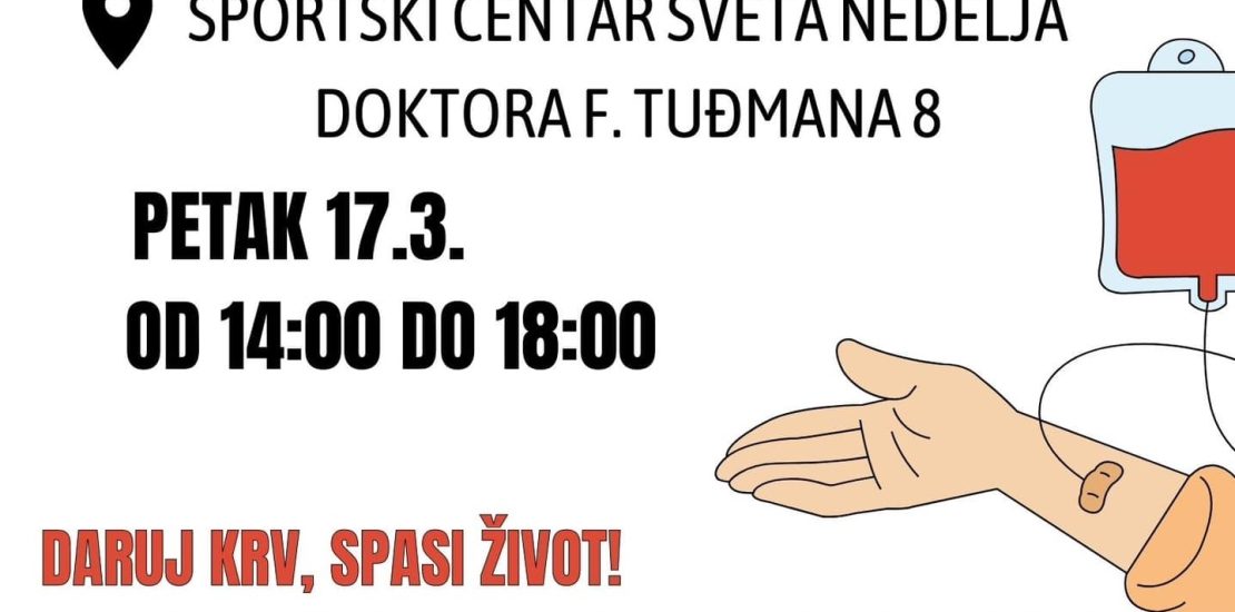 Darivanje krvi 17. ožujka u Svetoj Nedelji